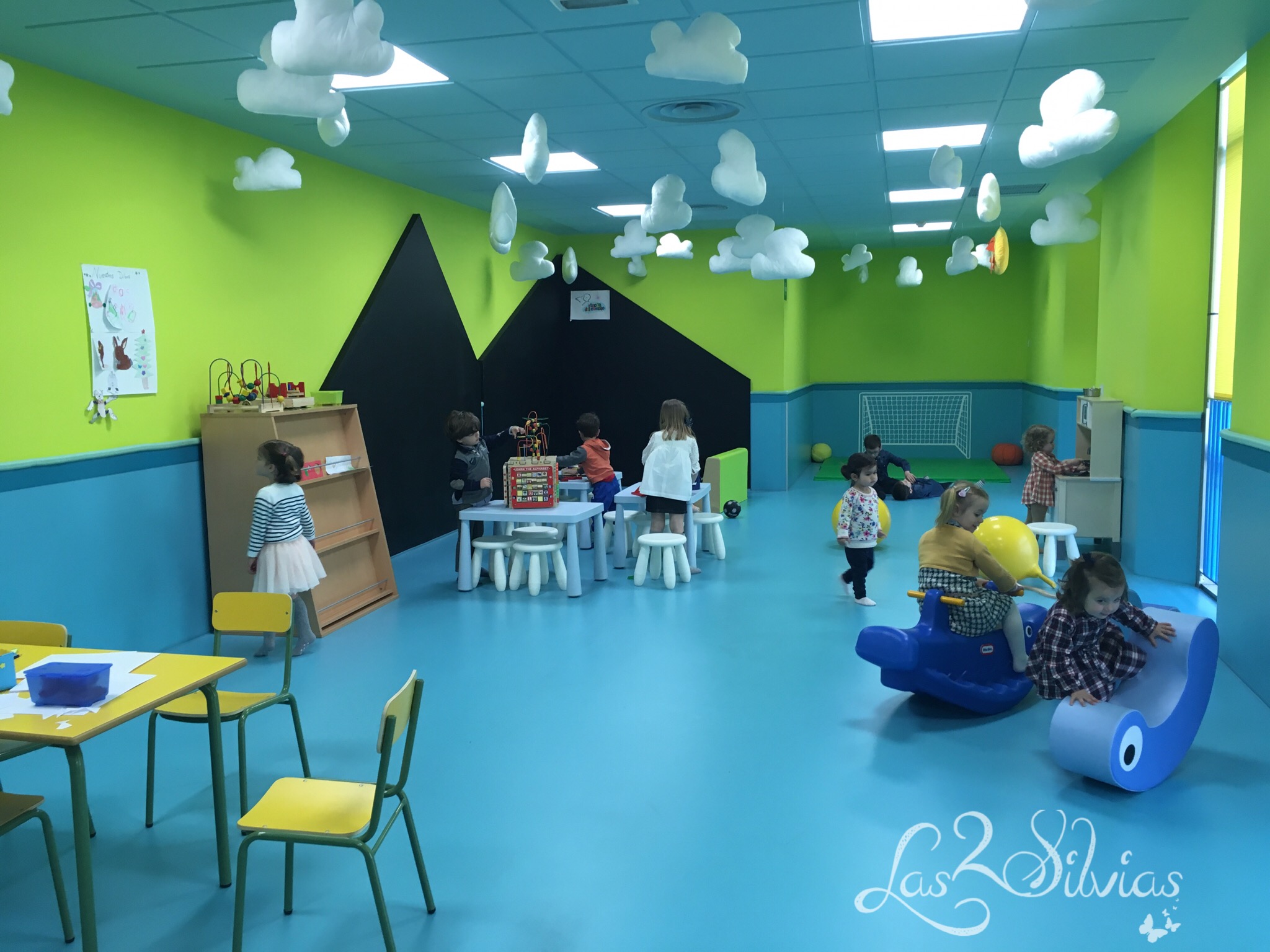 No conocía este servicio y me pareció una idea genial. La verdad es que estaba un poco preocupada por si Silvia no se quería quedar. Pero nada más lejos de la realidad: fue ver la sala Mini Lys y querer entrar como una loca. Le tocó esperar a que me registrara con mi D.N.I. para poder acceder y… ¡a correr! 😆 Ya le dio igual que nos fuéramos. Allí tienen un montón de zonas para entretenerse: portería, mesas para pintar, balancines, zona de lectura, cocinita y hasta televisión. Además íbamos con un montón de amiguitos, así que la diversión estaba asegurada.