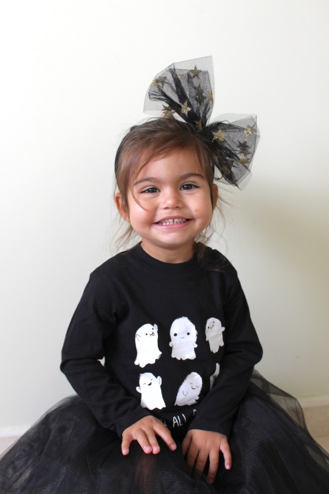 H&M siempre tiene cosas chulísimas para disfrazar a los peques cuando llegan fechas señaladas (Pascua, Navidad…). Para las fotos de este año le he comprado una camiseta de esta temporada y las diademas ya las tenía del año pasado. El tutú es mío (aunque ella también tiene uno pequeñito).