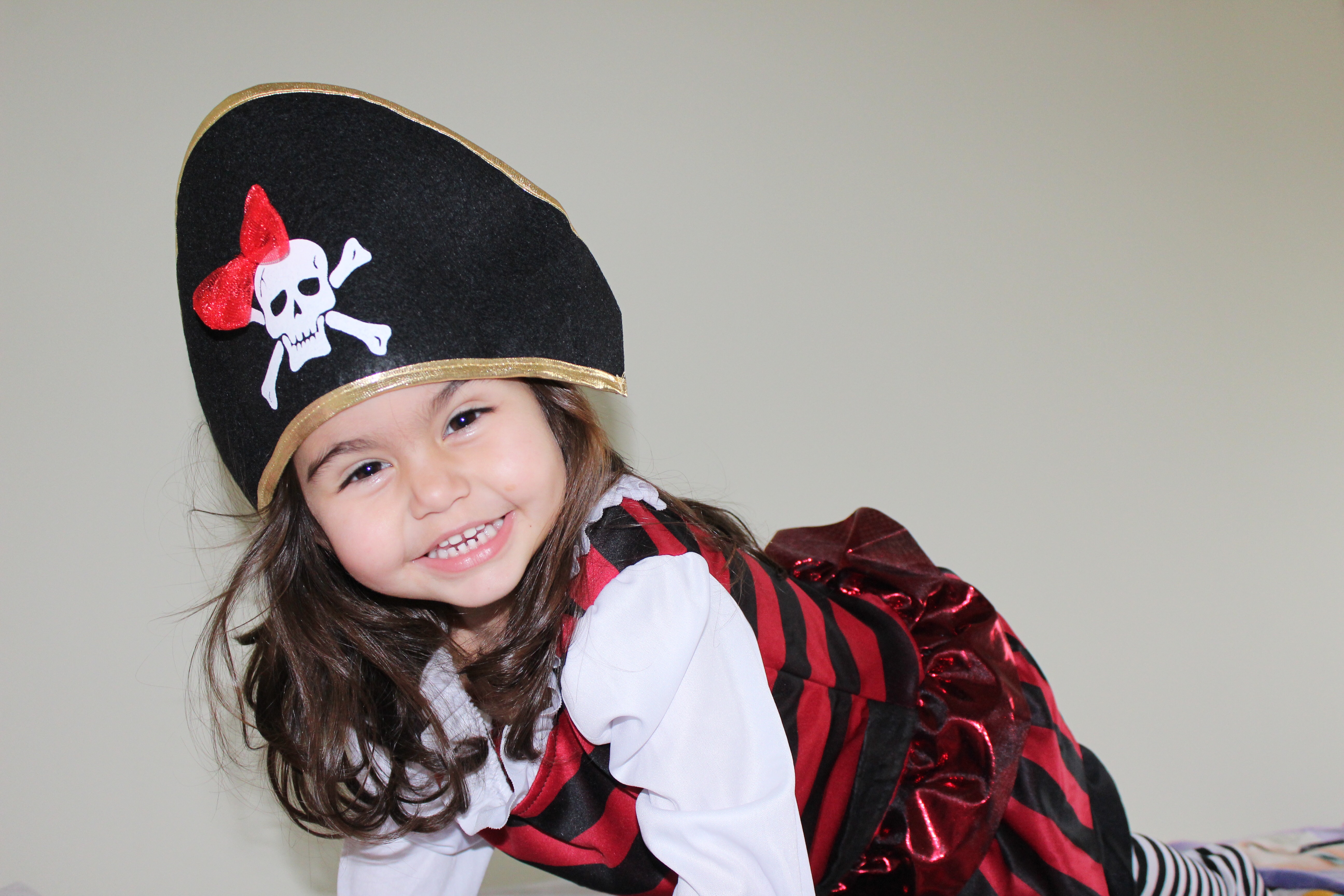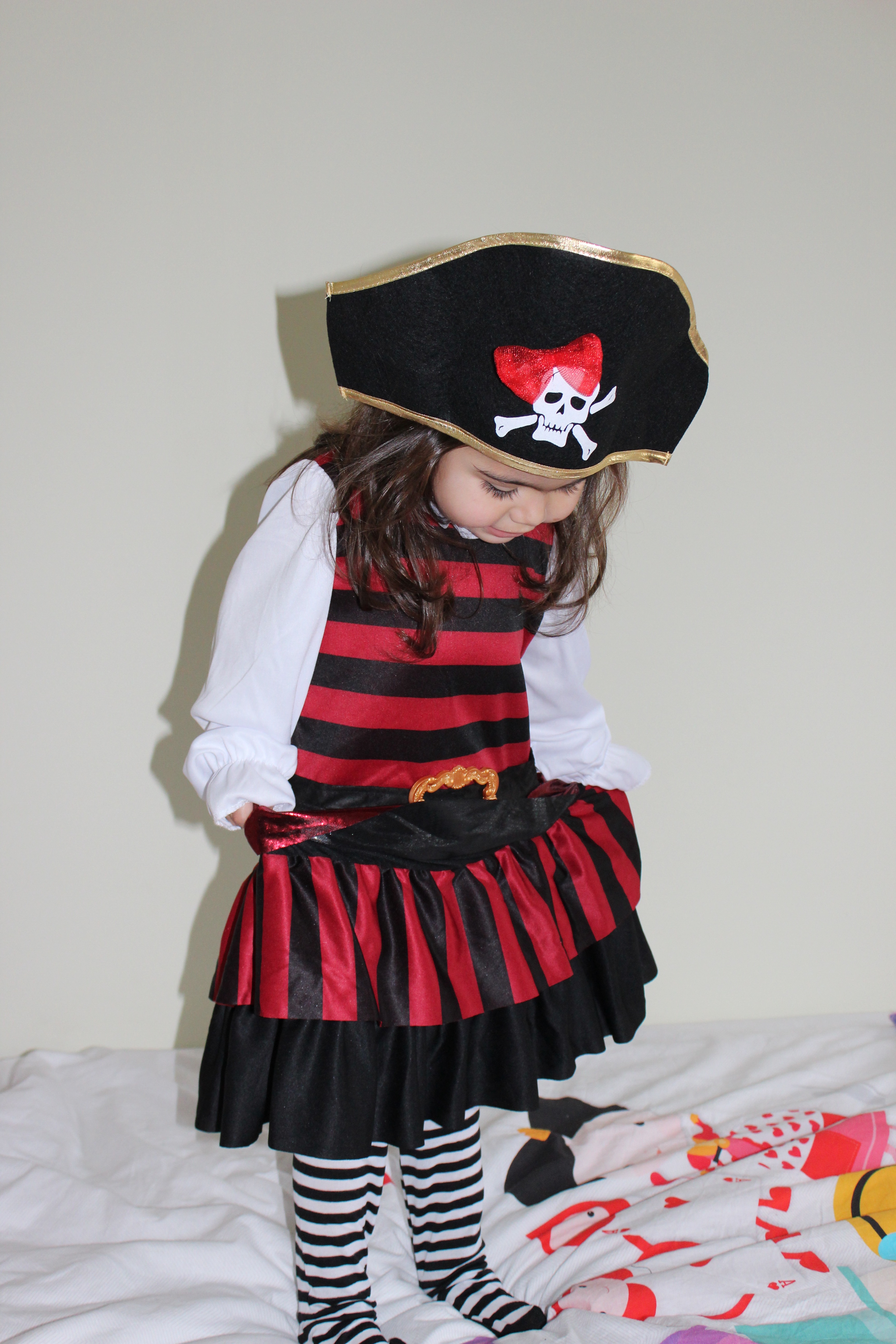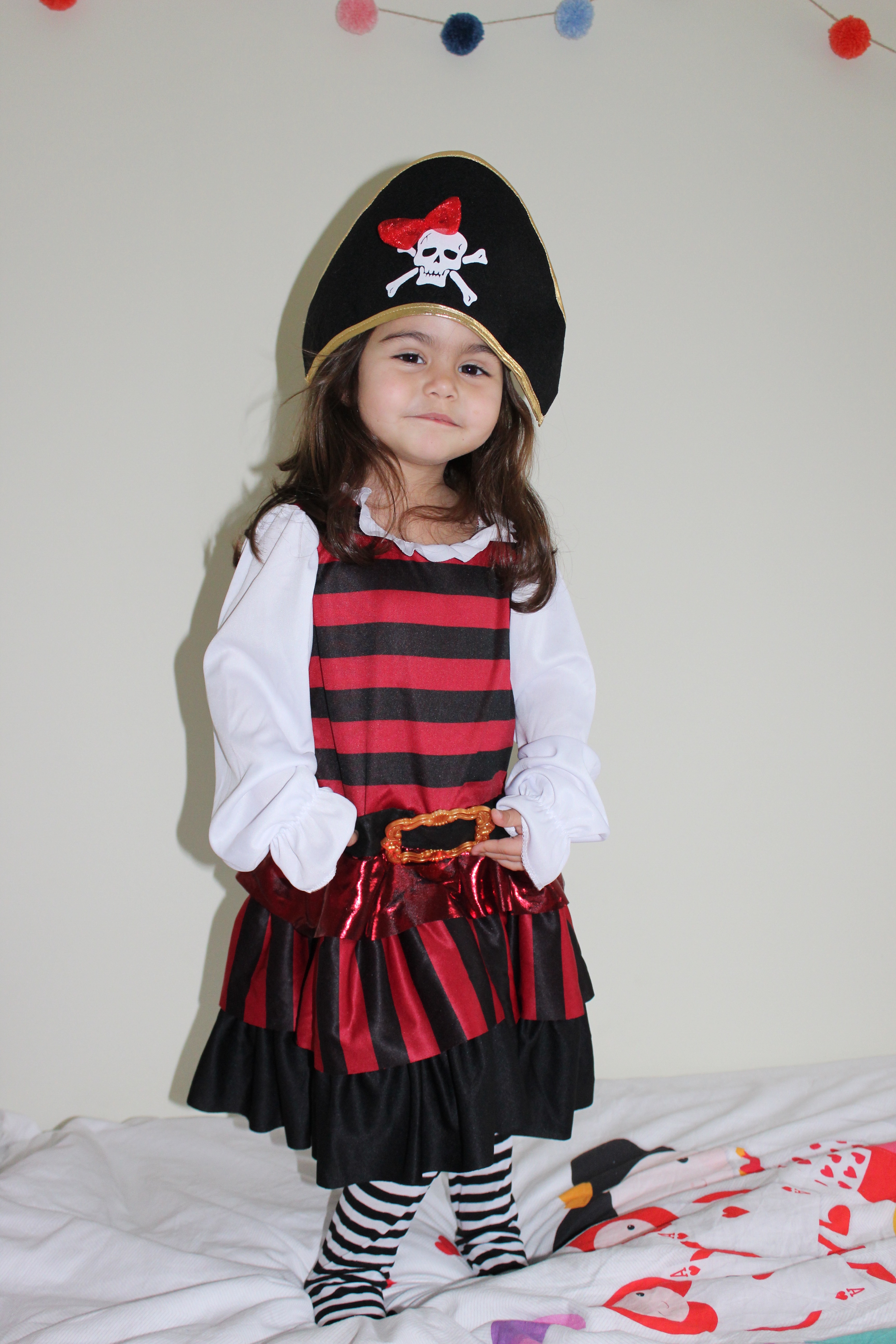 El disfraz elegido para Silvia fue este de pirata, con el que ella está encantada (aunque aún le venga grande) porque lleva un tiempo viendo a Lucrecia en Clan y contando la historia de El Pirata Pata Palo y ella dice que es un pirata.